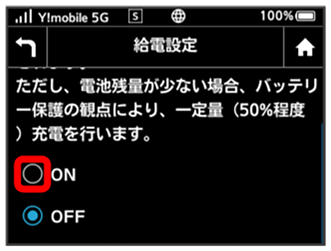 給電設定をONにすることで、本機の充電中にACアダプタ(別売)からバッテリーを介さず直接端末に給電できます。