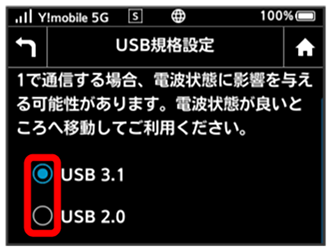 - 設定するUSB通信規格の横のチェックマークをタップ
