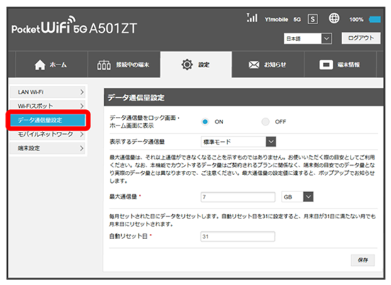 - お買い上げ時の最大通信量は7GBに設定されています。