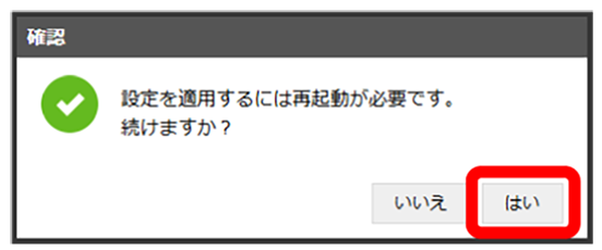 保存と操作し、再起動後(およそ1分程度かかります)に再度ログインしてください。