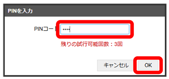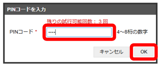 - PIN認証について詳しくは、「PIN認証を行う(WEB UIから)」「PIN認証を行う(本体から)」を参照してください。