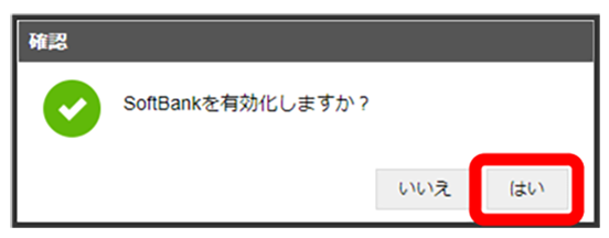 - USIMカードの無効化についての確認画面が表示された場合は、はいをクリックしてください。USIMカードを無効化した後、自動的に再起動(およそ1分程度かかります)したら再度ログインしてください。