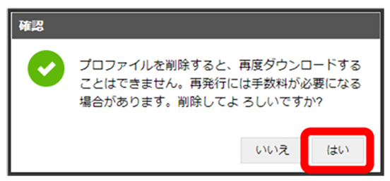- 新規のプロファイルを表示して、削除をクリックすると、プロファイルを削除できます。