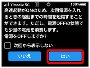 (モバイルネットワーク接続完了アイコン)になったら使用可能です(高速起動設定がONの場合、電源を入れてから約20秒お待ちください)。