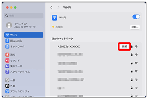 本機に設定したWi-Fi名(SSID)以外の表示のネットワークは、近隣から受信した無線LAN電波です。接続する場合はご注意ください。