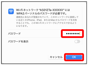 Wi-Fi名(SSID)とパスワード(セキュリティキー)については、「Wi-Fi名(SSID)とパスワード(セキュリティキー)について」を参照してください。