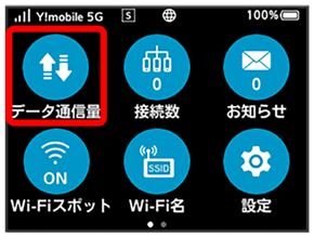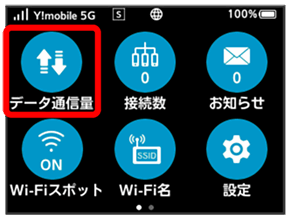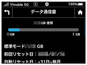 ご利用開始もしくはリセットしてから現在までのデータ通信量を表示します。