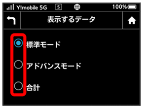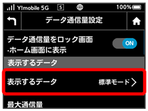ホーム画面やロック画面に表示するデータ通信量を、「標準モード」、「アドバンスモード」または2つのモードの合計値のいずれかに設定できます。