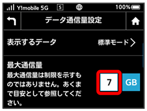 また、表示される最大通信量は契約された料金プランに連動したものではありません。適宜変更してご利用ください。
