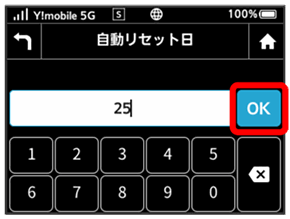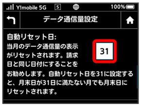 データ通信量を自動的にリセットする日が設定されます。