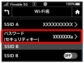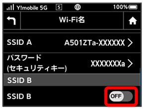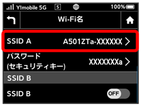 - Wi-Fi名(SSID):「A501ZTa-XXXXXX」(SSID A)および「A501ZTb-XXXXXX」(SSID B)