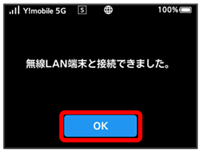 • 「無線LAN端末と接続できませんでした。」と表示された場合は、OKを選択して手順sb_icon_num_03からやり直してください。