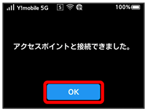 • 「アクセスポイントと接続できませんでした。」と表示された場合は、OKを選択して手順sb_icon_num_03からやり直してください。