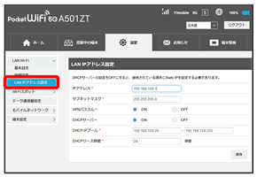LAN内の端末にIPアドレスを割り当てる機能を設定します。