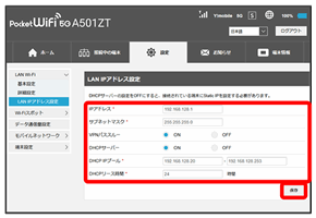 無線LANで接続した端末から、WEB UIでLAN Wi-Fiの設定を変更すると、無線LANの接続が切れることがありますのでご注意ください。