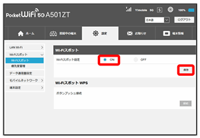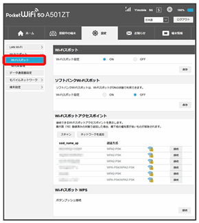 Wi-Fiスポットの設定をONにすると、会社の無線LANルーターや公衆無線LANサービスを利用してWi-Fiでインターネット接続できます。