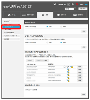 無線LANで接続した端末から、WEB UIでWi-Fiスポットの設定を変更すると、無線LANの接続が切れることがありますのでご注意ください。