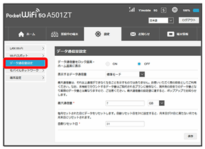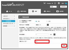 毎月、データ通信量を自動的にリセットする日を設定できます。