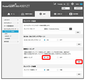 国際ローミングの利用をONにします。