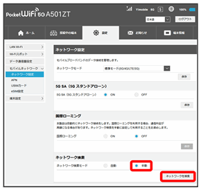 モバイルネットワークを検索して、ネットワークを設定できます。日本国内では、自動モードのみご利用になれます。設定の変更はできません。