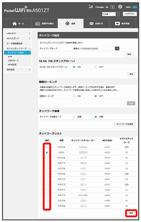 設定できるモバイルネットワークのリストが作成されます。