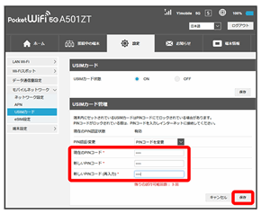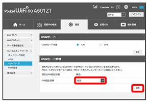 USIMカードにPINコードによる認証を設定します。
