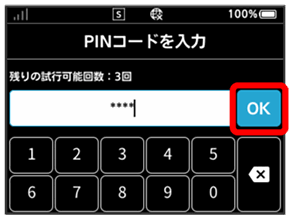 PINコード入力画面が表示されます。