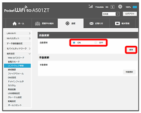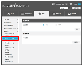 ソフトウェア自動更新機能のON/OFFが切り替わります。