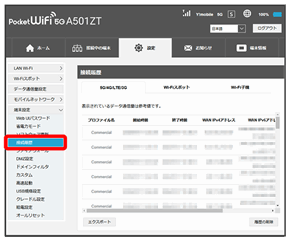 過去の接続履歴を表示・編集します。履歴には接続時のプロファイル名、開始/終了時間、アップロード/ダウンロードのデータ通信量などが表示されます。