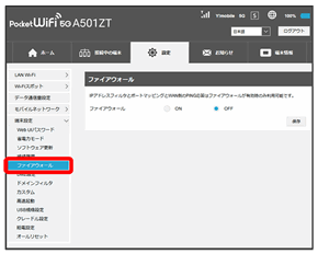 | ファイアウォール | ファイアウォール機能を使用するかどうかを設定します。 お買い上げ時の設定:OFF |