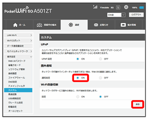 | WAN側のPING応答 | WAN側のPING応答機能を使用するどうかを設定します。 お買い上げ時の設定:OFF |