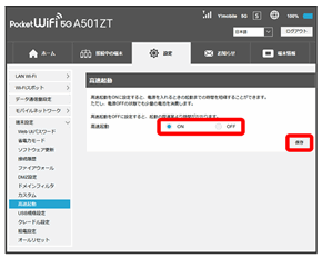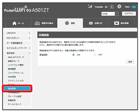 高速起動をONにすることで、電源ON時の時間を短縮することができます。