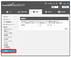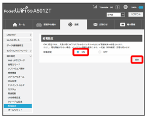 給電設定をONにすることで、本機の充電中にACアダプタ(別売)からバッテリーを介さず直接端末に給電できます。