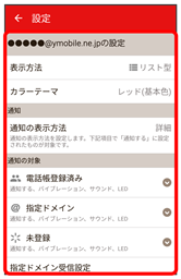 | 指定ドメイン | 指定ドメインに登録した相手からメールを受信したときの通知方法を設定します。 | |