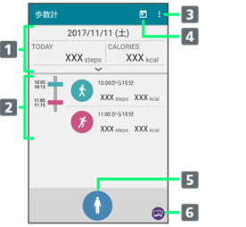 - 歩き始めは歩行かどうかの判断を行うため、10歩程度(5秒以上)の歩行を検出するまで、カウントを始めません。カウント開始時に、それまでに取得した歩数も合わせて表示します。