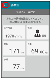 | プロフィール設定 | 身長、体重などを設定します。 | |
