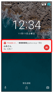 • 通知の表示方法は変更できます。詳しくは「Y!mobile メールの設定」を参照してください。