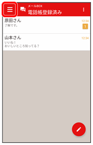 • 電話帳に登録済みの相手とのメールを確認するときは、電話帳登録済みをタップします。