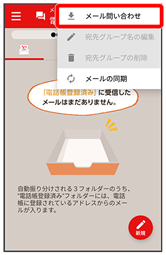 - 電話帳に登録済みの相手とのメールを確認するときは、電話帳登録済みをタップします。