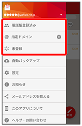 - 指定ドメインに設定した相手とのメールを確認するときは、指定ドメインをタップします。