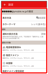 | 指定ドメイン | 指定ドメインに登録した相手からメールを受信したときの通知方法を設定します。 | |