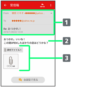 • ↓受信箱画面でメールのandroidone-s3_icon_077androidone-s3_icon_065表示)