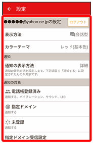 | アカウントの別表示 | Y!mobile メールと連携しているYahoo!メールを個別に表示させるかどうかを設定します。 |