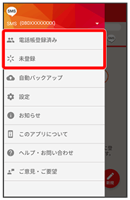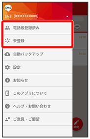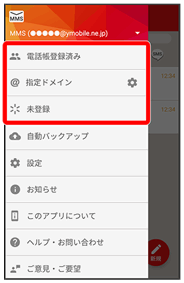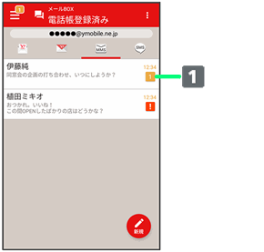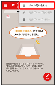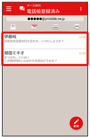 • 電話帳に登録済みの相手とのメールを確認するときは、電話帳登録済みをタップします。