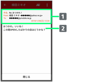 • ↓電話帳に未登録の宛先のメール送受信画面でandroidone-s3_icon_067androidone-s3_icon_082