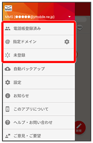 • 指定ドメインに設定した相手とのメールを確認するときは、指定ドメインをタップします。