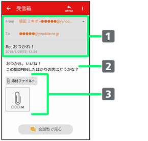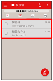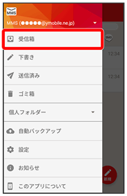 新着のMMSを受信すると、新着メッセージの通知と、通知アイコンが表示されます。