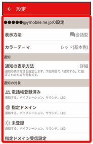| 指定ドメイン | 指定ドメインに登録した相手からメールを受信したときの通知方法を設定します。 | |