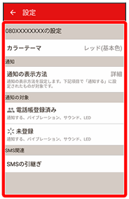 | 未登録 | 電話帳に未登録の相手からメールを受信したときの通知方法を設定します。 | |