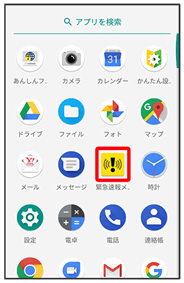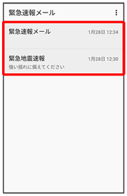 緊急速報メール受信メッセージ一覧画面が表示されます。